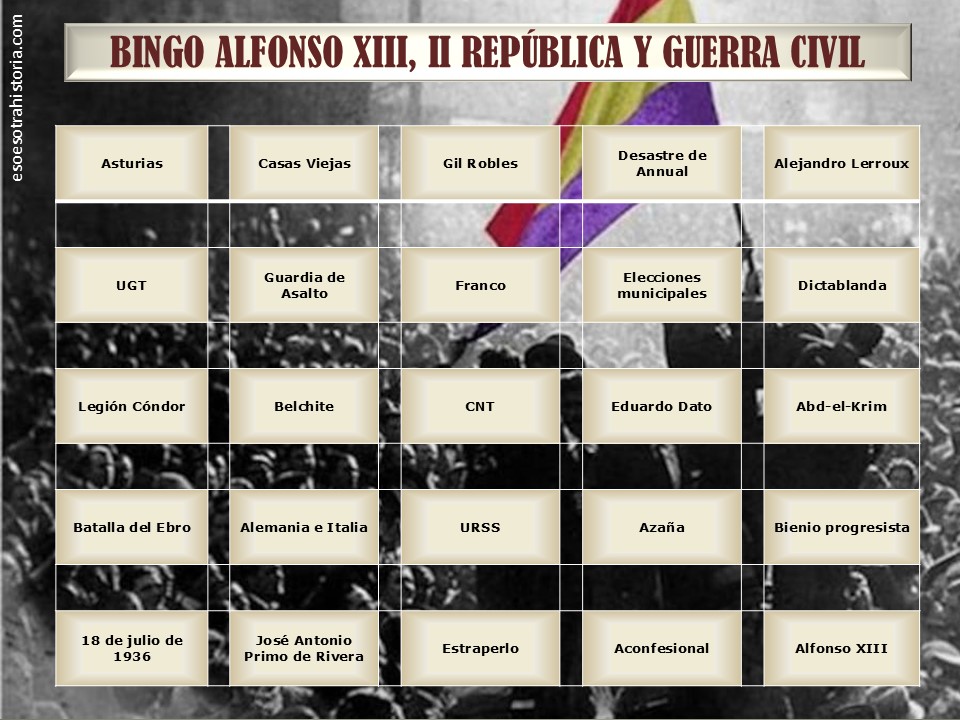 BINGO DE ALFONSO XIII, LA II REPÚBLICA Y LA GUERRA CIVIL ESPAÑOLA
